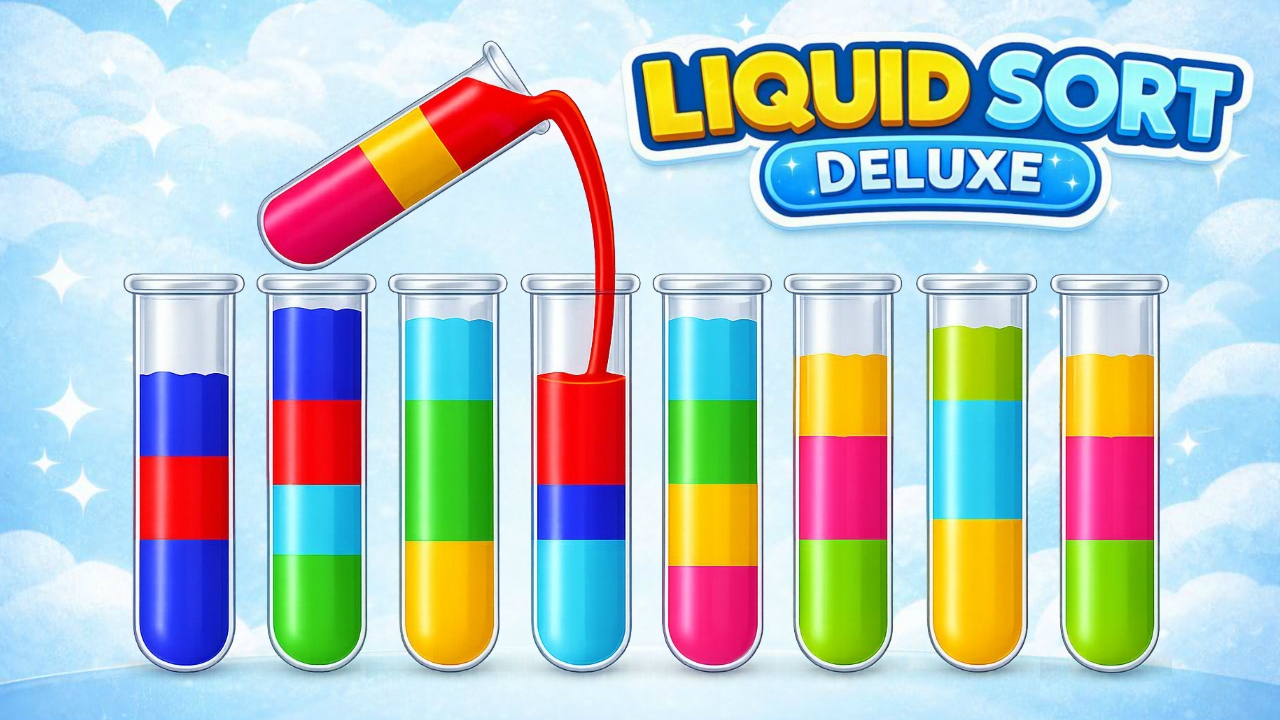 Liquid Sort Deluxe is a relaxing and addictive color sorting puzzle game where you sort colorful liquids into tubes until each tube contains only one color. Plan your moves carefully and challenge your brain with unlimited levels. Unlock an extra tube by watching a short reward ad to make the puzzle easier, or get unlimited time to complete tricky levels. Use a mouse or touchpad to select and sort the colors into matching tubes.